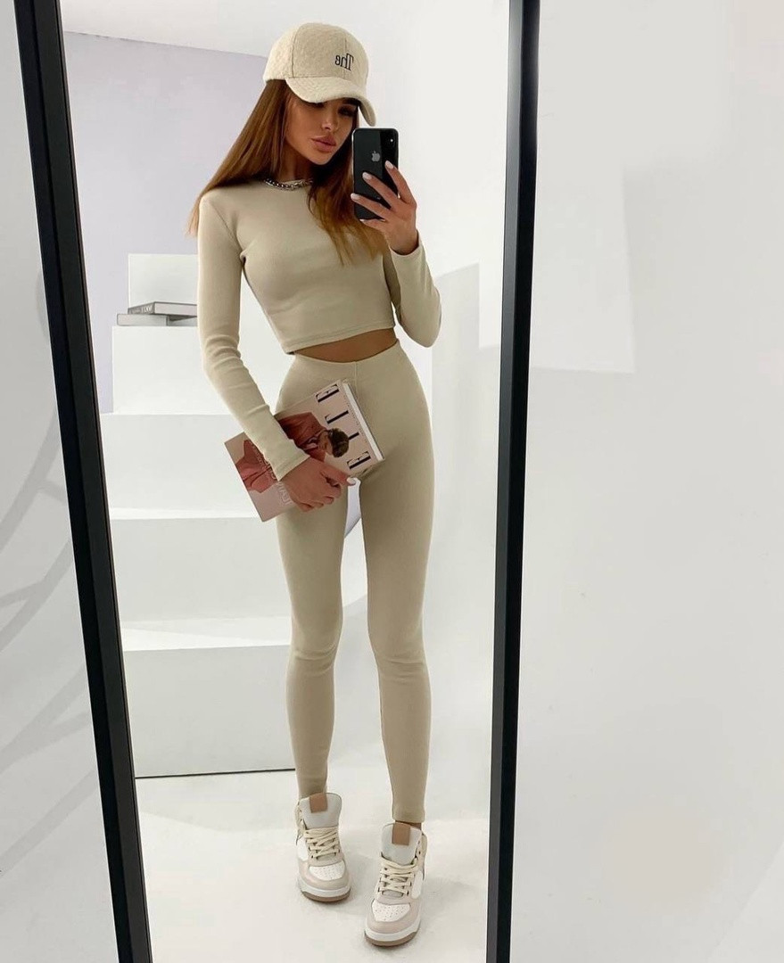 ♦ Трендовий костюм підійде для спорту, прогулянок, подорожей та будь-якого виду активності. Облягаючі легінси із завищеною талією візуально підтягують фігуру. Топ комфортно облягає та не просвічує.