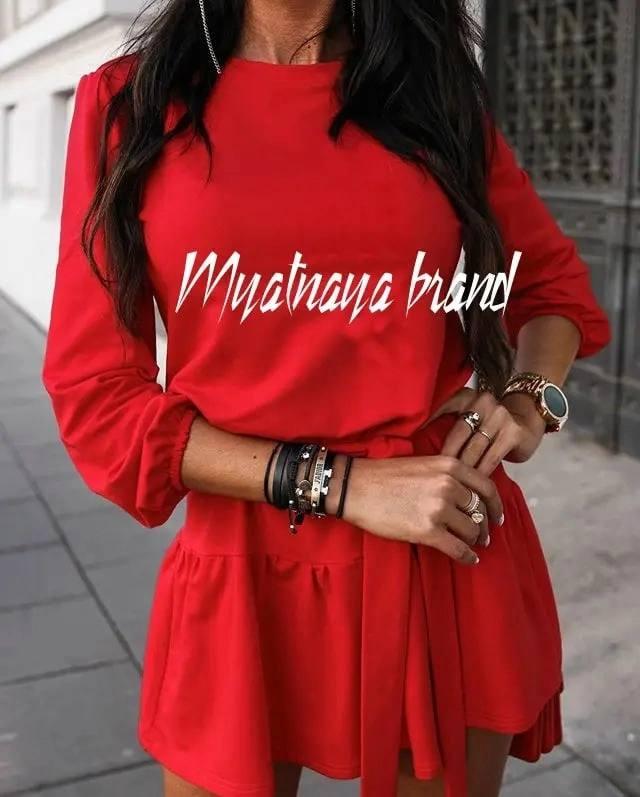 Яскрава і грайлива міні-сукня, яка стане головним акцентом вашого гардеробу. Виготовлена з м’якого трикотажу, вона має вільний крій, що дарує комфорт та стиль. Довгий рукав і круглий виріз додають образу завершеності, а пояс на талії дозволяє створити витончений силует. Широкий рюш по низу сукні додає нотку кокетливості та жіночності. Ця сукня у червоному кольорі ідеально підійде для створення модного та яскравого образу. Розмір 42.